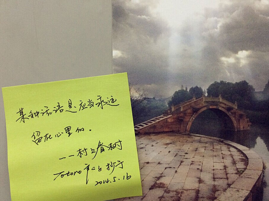 让我们经由抄写来感受村上文字的温度,下周抄写句子是:“所谓理解,通常不过是误解的总和。——村上春树”。