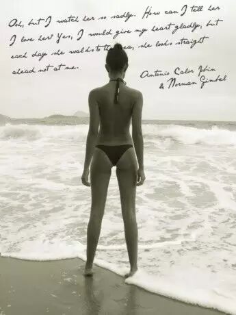 1963/1982年从伊帕内玛来的女孩走在散发形而上热度的沙滩,不发出一点响动。沙滩很长,被白浪缓缓冲刷着。没有风。地平线上什么也没有。我闻得到海洋的气味。烈日把我晒焦了。