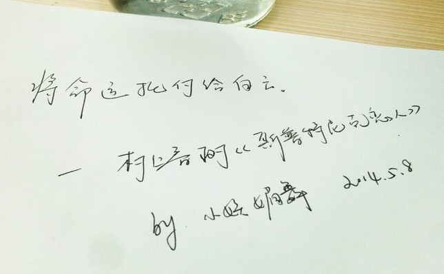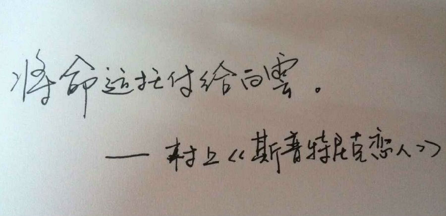 让我们经由抄写来感受村上文字的温度,下周抄写句子是:“某种话语是应当永远留在心里的。——村上春树”。